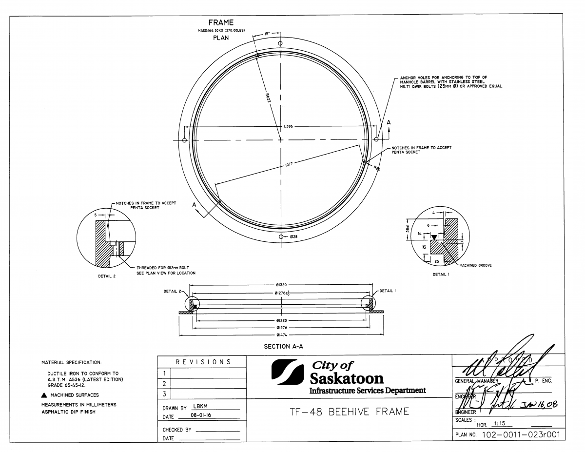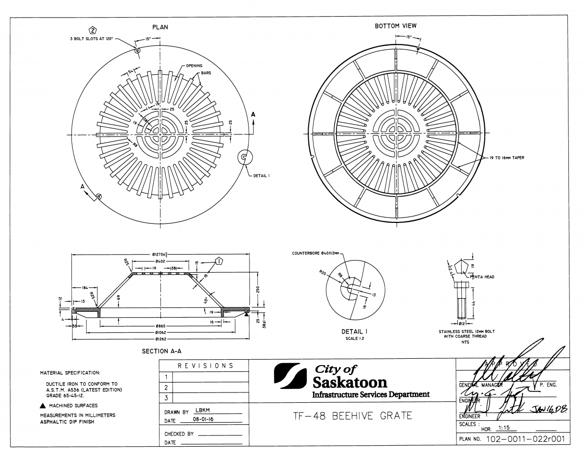 These drawings may be referenced from City of Saskatoon Specifications or the Design & Development Manual. They may also act as stand-alone specifications.
