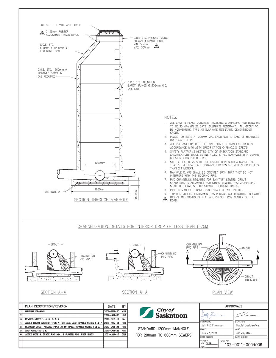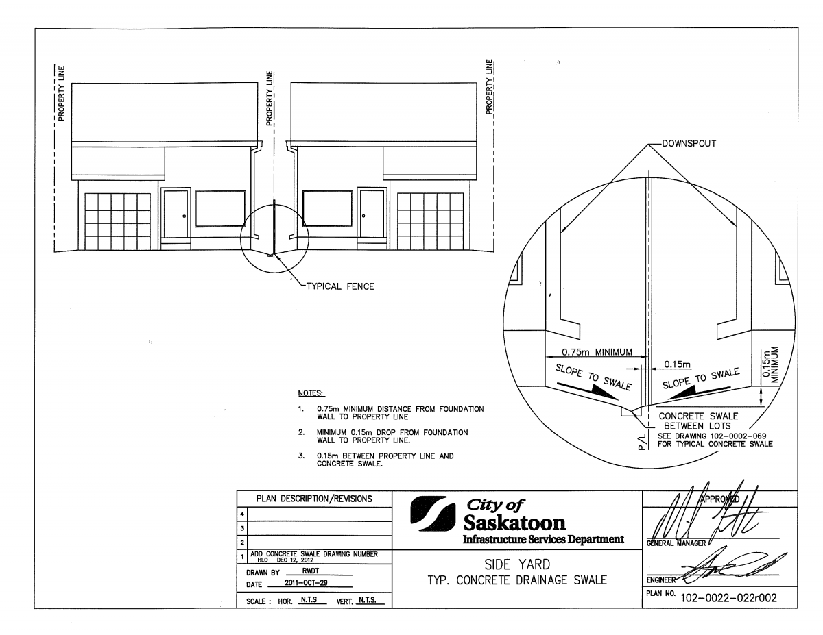 These drawings may be referenced from City of Saskatoon Specifications or the Design & Development Manual. They may also act as stand-alone specifications.