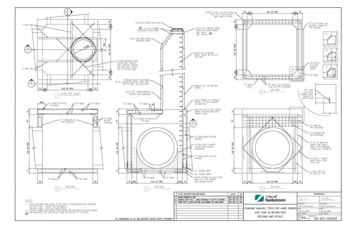 These drawings may be referenced from City of Saskatoon Specifications or the Design & Development Manual. They may also act as stand-alone specifications.