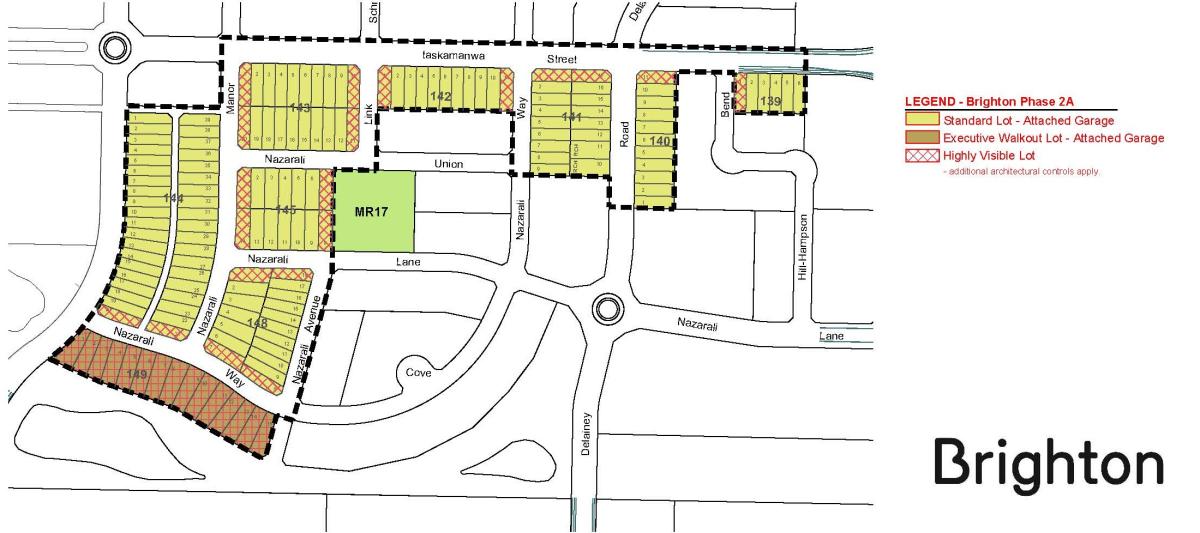 Phase 2A of Brighton features two lot types: Standard Lot - Attached Garage, Executive Walkout Lot – Attached Garage. The architectural controls for these lot types are noted below: