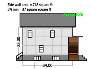- On the side building wall, closest to the flanking street or park space, window and/or door placement shall be provided at an area no less than five percent of the area of the side building wall.