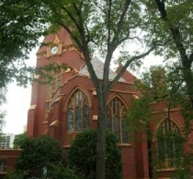 St. John’s Anglican Cathedral is a brick cruciform church that was constructed between 1912 and 1917 along the riverbank of downtown Saskatoon.